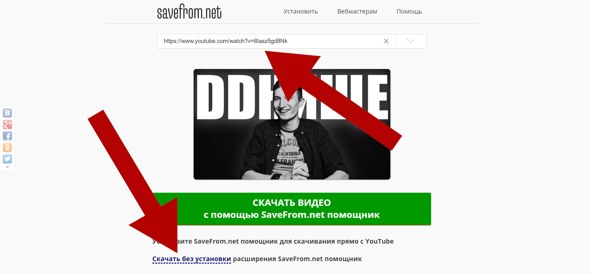 Это самый простой, но менее функциональный способ. Его главным достоинством является мобильность и скоро загрузки без программ. Нет необходимости устанавливать сторонний софт и расширения. Таким способом можно воспользоваться лишь имея браузер и интернет. Для скачивания с ютуба нужно: