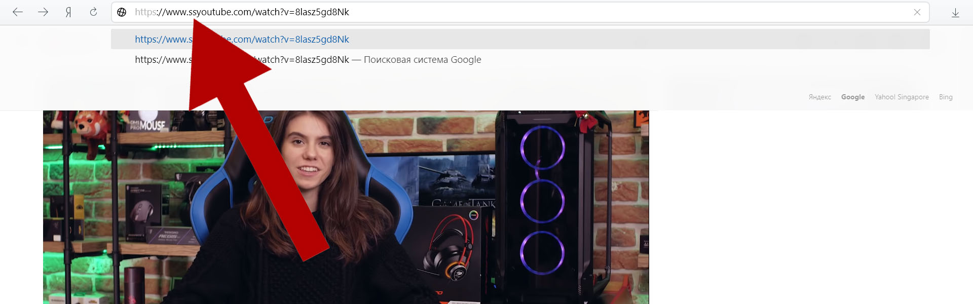 Для упрощения доступа можно в адресной строке ютуба при открытом ролике ввести “ss” перед названием сервиса. Тогда откроется тот же сайт с загрузкой ролика. Стоит помнить, что такой метод работает только если ролик уже открыт.