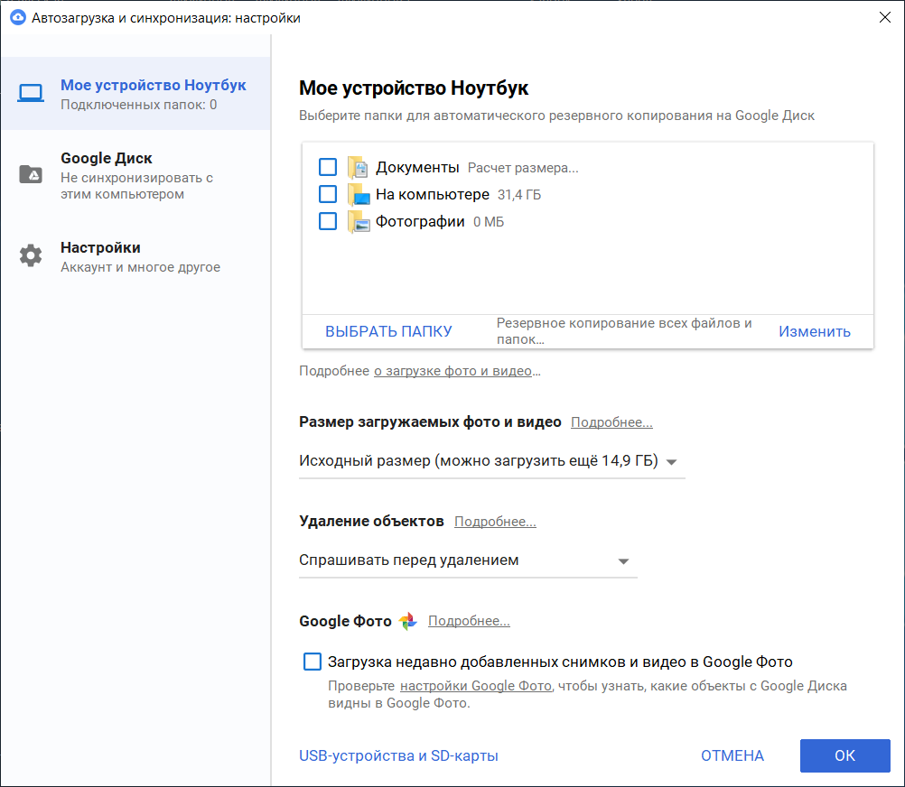 Google создала программу для управления виртуальным хранилищем на компьютере. Но продукт получился неоднозначный. При установке, программа предлагает синхронизировать папки из компьютера на диск, предполагая, что файлы будут одновременно находиться в облаке и на компьютере. Такая суть программы не всех устраивает, так как чаще нужно, чтобы файлы не занимали место на диске компьютера.
